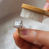 Basta deixar sua joia de moissanite de molho em água morna com algumas gotas de sabão neutro por cerca de 10 minutos. Depois, use uma escova de cerdas macias (como uma escova de dentes infantil) para alcançar os cantinhos mais difíceis — sempre com cuidado extra ao redor das garras.