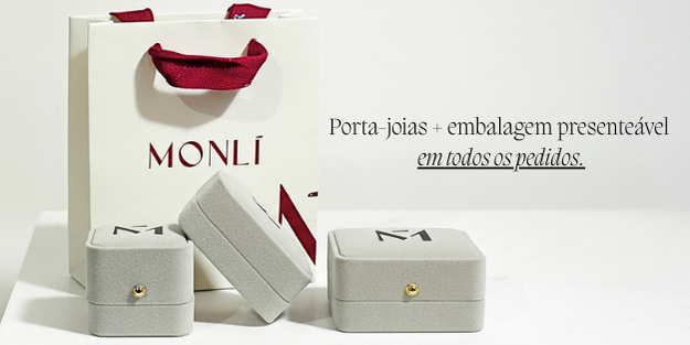 Joias do dia a dia acompanham estojo de joia de veludo Monlí exclusivo.